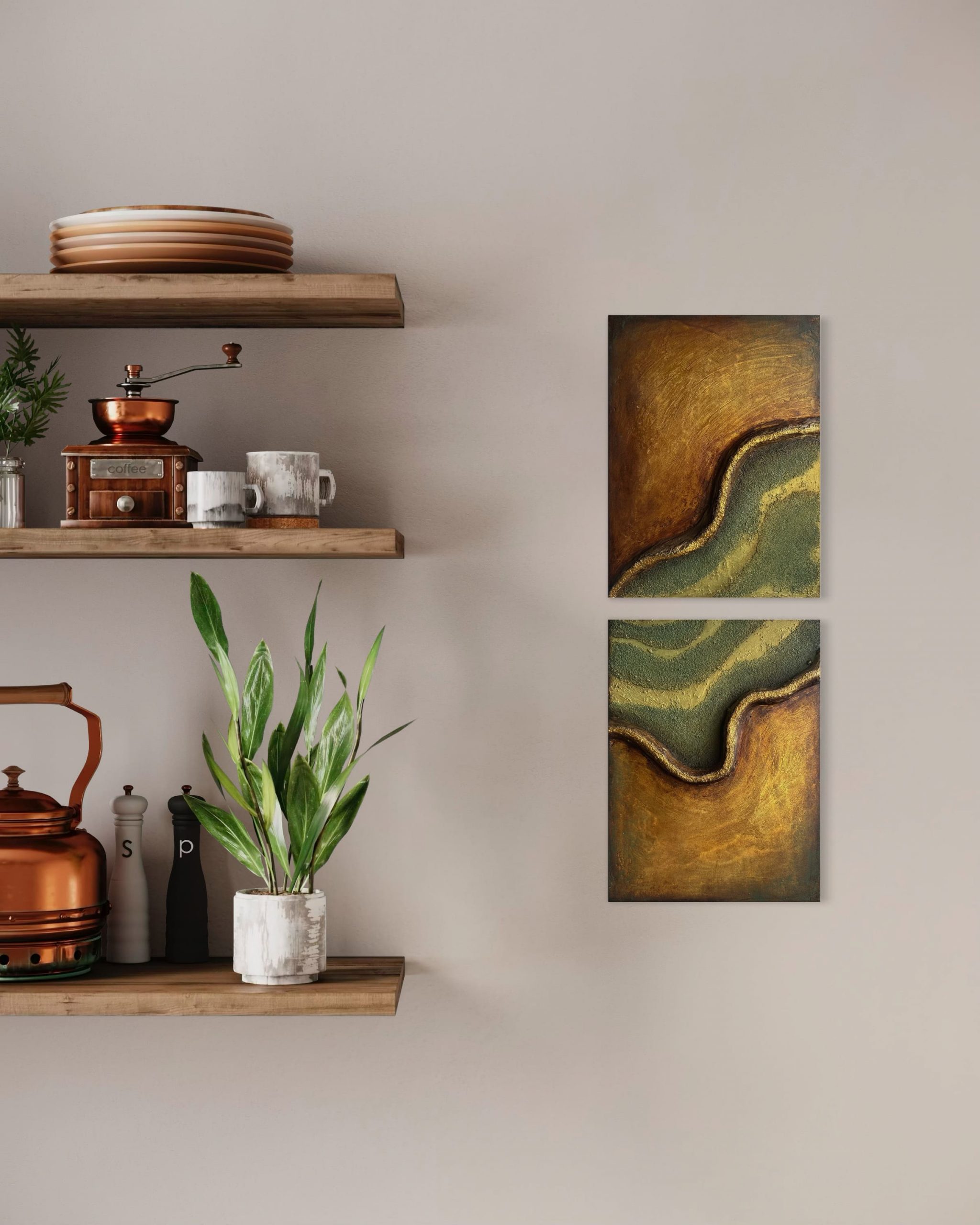 Meine Gemälde leben von vielschichtigen Strukturen, die ich überwiegend aus verschiedenen Mineralien gestalte. Durch den Auftrag von Acrylfarben in mehreren Lasuren entstehen Werke mit besonderer Lichtwirkung, Lebendigkeit und einer spannenden Haptik. Je nach Komposition setze ich zusätzlich Pigmente, Kohle oder Wachs ein, um das Bild weiter zu bereichern.