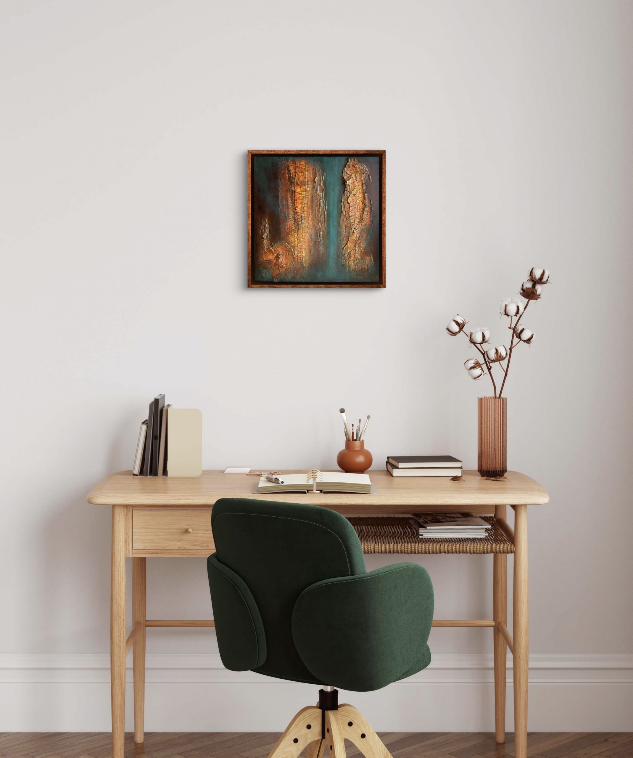 Meine Gemälde leben von vielschichtigen Strukturen, die ich überwiegend aus verschiedenen Mineralien gestalte. Durch den Auftrag von Acrylfarben in mehreren Lasuren entstehen Werke mit besonderer Lichtwirkung, Lebendigkeit und einer spannenden Haptik. Je nach Komposition setze ich zusätzlich Pigmente, Kohle oder Wachs ein, um das Bild weiter zu bereichern.